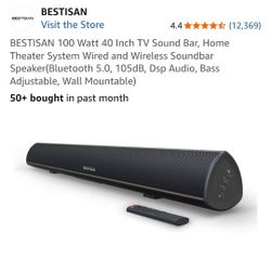 New. BESTISAN 100 Watt 40 Inch TV Sound Bar, Home Theater System Wired and Wireless Soundbar Speaker(Bluetooth 5.0, 105dB, Dsp Audio, Bass Adjustable,$45Hesperia, CA