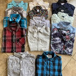Lot of 15 Boys Button Up Plaid Hawaiian Surf Shirts Size 8/10 Short and Long Sleeve$20Glendora, CA