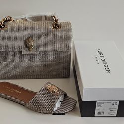Kurt Geiger London Kensington Bag & Flat Sandal Slides 9 Houndstooth Beige$360Irvine, CA