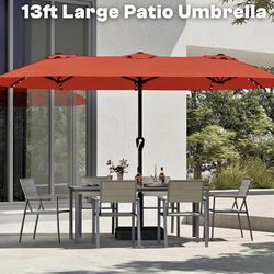 13FT Double-Sided Patio Umbrella with 48 Solar LED Lights, Large Rectangular Outdoor Market Umbrella with Crank Handle, Vented Canopy, Heavy-Duty 12 R$90Ontario, CA