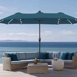 13ft Outdoor Patio Umbrella with Solar Lights, Large Double-sided Umbrella with LED Lights, Perfect for Garden, Deck, Pool, Cyan Blue$90Ontario, CA