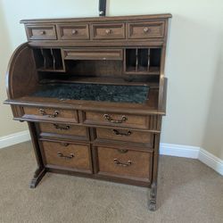 Vintage Solid Oak Wood Secretary Desk With Roll Top, Storage, Brown$150West Covina, CA