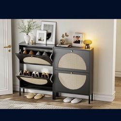 2 Pieces Black Rattan Shoe Cabinets [NEW IN BOX] **Retails for $300+$90Hacienda Heights, CA