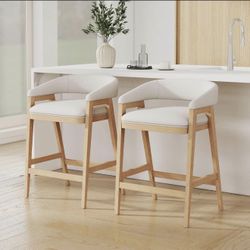 Modern Counter Height Bar Stools Set of 2, Fabric Upholstered Barstools with Barrel Back, 26" Oak Wooden Kitchen Island Stools Comfy Counter Stool$250Corona, CA