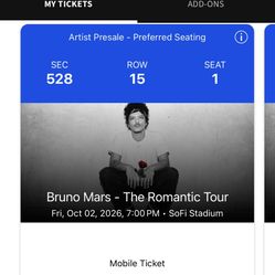 Bruno Mars | Oct 7 | Sofi Stadium | VIP section$2,000Tustin, CA