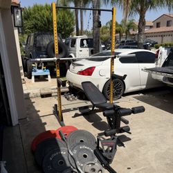 《FREE LOCAL DELIVERY》SQUAT RACK + ADJUSTABLE BENCH + OLYMPIC BUMPER PLATES + BARBELL + STRAIGHT CURL BAR$799Perris, CA