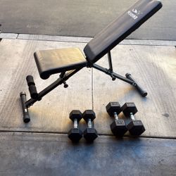 Adjustable Dumbbell Set, with metal weight plates and workout bench$150Jurupa Valley, CA