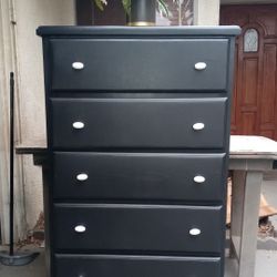 5 Drawer Upright Dresser - Solid Wood - Black With White Ceramic Drawer Pulls $235Pico Rivera, CA