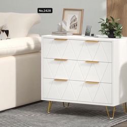 3 Drawer Wide Nightstand with Charging Station, 27.6 Inch Wood Nightstand, Dresser with Storage Drawers, Bedside Table with Metal Handle & Leg,White$75El Monte, CA