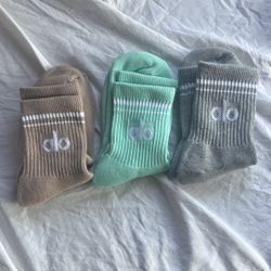 Alo Yoga Unisex Throwback Half Crew Socks 3 Pack Black Grey Mint$36Redding, CA