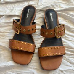Lola Cruz Used Brown Tan Studded Heel Sandals Size 39$45Redding, CA