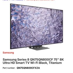 Samsung Series 8 75” Inch 8K Ultra HD Smart TV $1,500Hesperia, CA