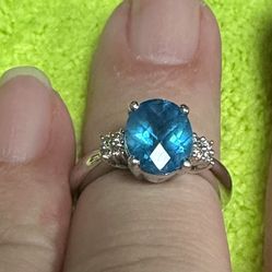 14k Blue Stone RING White Gold With REAL DIAMONDS $550Corona, CA