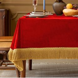 Red Tablecloth Thickset Velvet Tablecloth with Beautiful Gold Tassels Vintage Table Cloth for Home Decor Wedding, Party, Banquet and Events 67x120-Inc$30Hesperia, CA