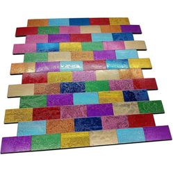 XUANINY 11-Sheet Peel and Stick Backsplash Tiles, Rainbow Subway Aluminum Surface Metal Mosaic Sticker, Rainbow-Colored Wall Sticker for Living Room, $25Hesperia, CA