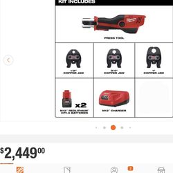 M12 12-Volt Lithium-lon Force Logic Cordless Press Tool Kit (3 Jaws Included) with Two 1.5 Ah Battery$1,699San Bernardino, CA