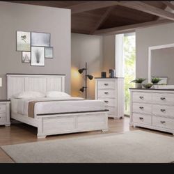 Brand New Elegant Leighton Farmhouse Style Two Tone Queen Bed Set $999Moreno Valley, CA