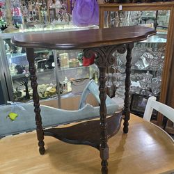 Antique Hand Carved half moon table. Still has a remnant of the assembly instructions attached to the underside.$79Hesperia, CA