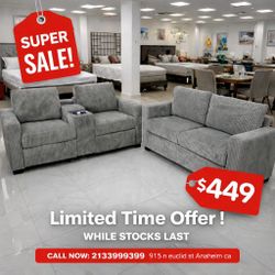 Corduroy 2 Piece Sofa And Loveseat Set With Cup Holders + Console $449Riverside, CA
