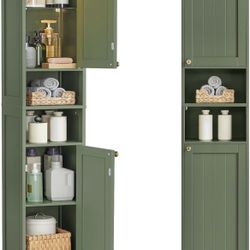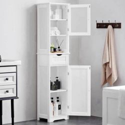 Tall Bathroom Cabinet with Lights, Slim Freestanding Bathroom Storage Cabinet with Adjustable Shelves, for Small Spaces, Modern, 15.7 Inches Wide, For$55Ontario, CA