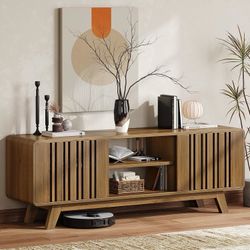 63-Inch TV Stand for TVs up to 75 Inch, Mid-Century Modern Television Stand with Power Outlet, Entertainment Center with Sliding Grille Doo$130Ontario, CA