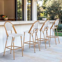French Outdoor Bar Stool Set of 4, Patio Counter Height Chairs with Natural Woodgrain Aluminum Frame, Stackable Counter Stools for Backyard$120Ontario, CA