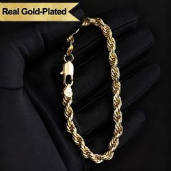 14K Real Gold-Plated Rope Cuban Bracelet $65Rialto, CA