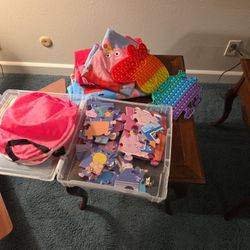 PEPPA PIG MATERIAL, PEPPA PIG FLAT SHEET & PILLOWCASE, FLOOR PUZZLE &PEPPA POP IT SEE DESCRIPTION $20Grand Terrace, CA
