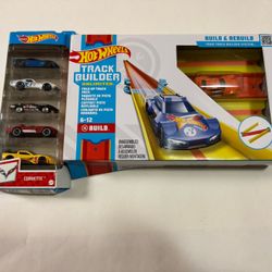 HOT WHEELS TRACK BUILDER + PACK OF 5 CORVETTE HOT WHEELS. NOT OPENED. BOTH FOR $18.00. $18San Bernardino, CA