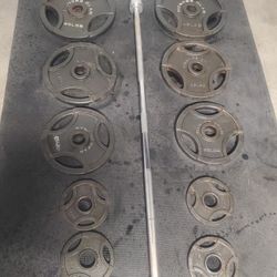 Olympic Weight Set 7ft 45lb Olympic Bar 2x45lbs 2x35lbs 2x25lbs 4x5lbs That's 275lbs All Together With Bar $285Hesperia, CA