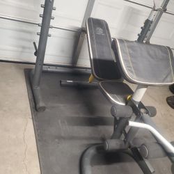 USED Gold Gym Weight Bench Still In Good Shape with adjustable bench Squat rack,Leg Developer & Preacher Pad with Curl bar $75Hesperia, CA