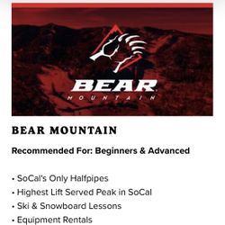 Big Bear Full Day Lift Tickets (2)$140Grand Terrace, CA