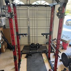 Power Rack/580 lbs Weighted Plates/Bench Seat/Barbell $950Riverside, CA