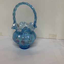 Fenton English Rose Celeste Blue Overlay Basket. Signed by Artist & Inscribed Bill Fenton. Gorgeous Iridescent Blue Basket With Blue Glass Rope Style$85Fontana, CA