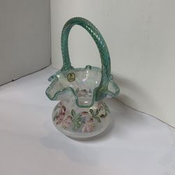 FENTON GLASS PRESIDENTS' COLLECTION HP BURMESE BASKET 2005 - MEASURING ABOUT 9" TALL AND 8" WIDE,$95Fontana, CA