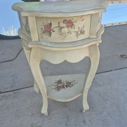 shabby chic French Provincial style accent table, featuring a hand-painted floral design on a distressed antique white finish.$20Hesperia, CA