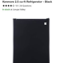 Kenmore 2.5 cu ft black compact refrigerator $100$100Riverside, CA