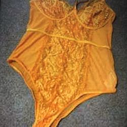 New 1 Xl Orange Stretchy Lace Bodysuit Lingerie $13Mount Baldy, CA