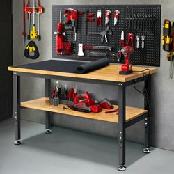 Workbench for Garage, Heavy-Duty 60 inch 2 Tier Wood Work Bench with Storage Pegboards,Rubber Mat,Power Outlets, Rubber Wood Tabletop 2000 LBS Load Be$180Rancho Cucamonga, CA