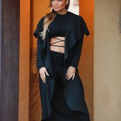Fashion Nova Long Black Belted Wide Lapel Cardigan Size Medium Excellent Preloved Condition $14Moreno Valley, CA