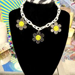 Happy Face Glitter Daisy Choker Necklace Kandi Rave EDC Outfit Clothes $16Ontario, CA