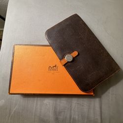 Authentic Hermès Brown Leather Long Wallet Clutch Orange Interior Made in France$699Corona, CA