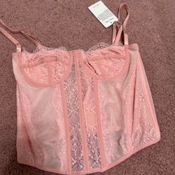 New Medium Pink Lace Corset Bustier Top Outfit Lingerie $15Mount Baldy, CA