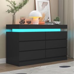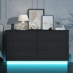 6 Drawer Dresser, Modern Black Drawer Chests with Power Outlet and Led Light, Wide Chest of Drawers for Storage and Organization for Bedroom, Living R$120Rancho Cucamonga, CA