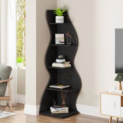 5-Tier Black Corner Shelf, Modern Wall-Mounted Bookshelf with Seagrass-Inspired Design, Adjustable Storage Rack for Living Room, Home Office$60Upland, CA