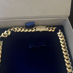 Cuban Link Gold Chain w Matching Braclet Gold Plated Iced Out Buckle Lock High Quality Pieces 20mm$300Riverside, CA