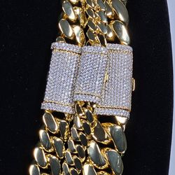 Cuban Link Gold Chain w Matching Braclet Gold Plated Iced Out Buckle Lock High Quality Pieces 20mm$300Riverside, CA