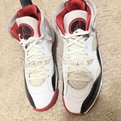 Jordan Jumpman Two Trey sneakers in a white, black, and red colorway. $100Moreno Valley, CA