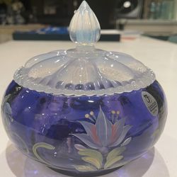 FENTON GLASS DESIGNER SHOWCASE ROYAL PURPLE H/P SIGNED BY THE ARTIST POWDER BOX , CANDY DISH. $100Redlands, CA