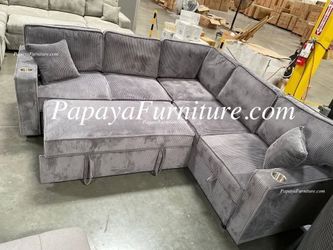 NEW LARGE U SHAPE Sectional Sofa with Storage Chaise and Pullout Sleeper Bed Under Seat Pull out sofabed Ashley Style BIG COUCH SALE Season Discount$899Corona, CA
